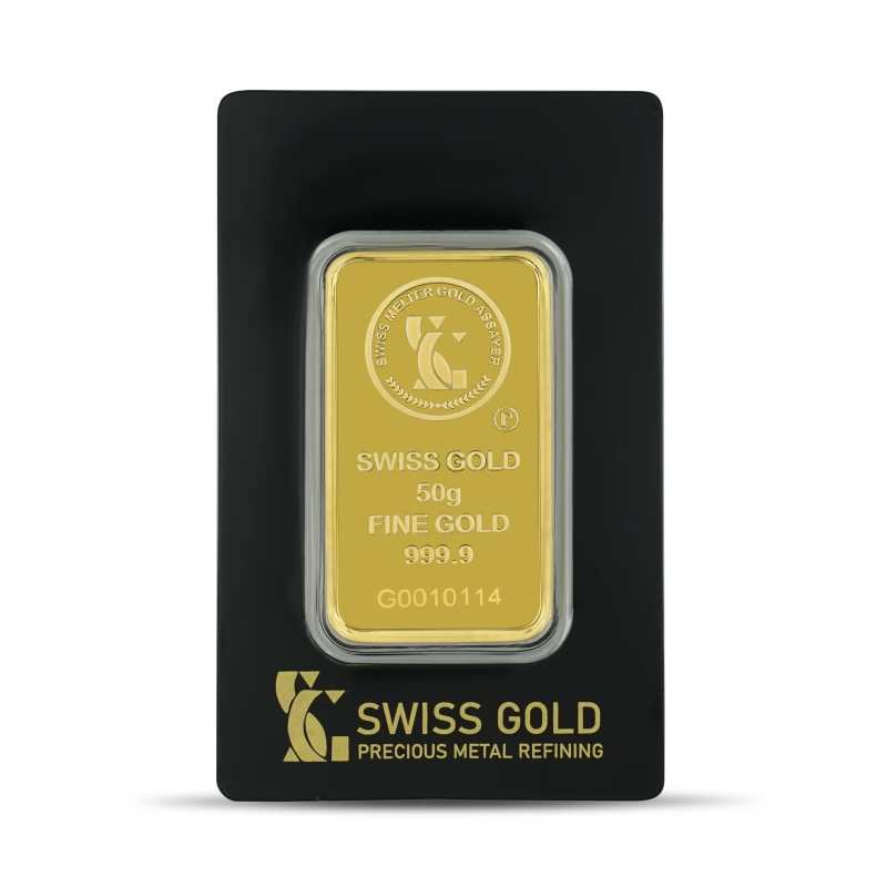 999.9 Swiss Gold Minted Bar -50 grams